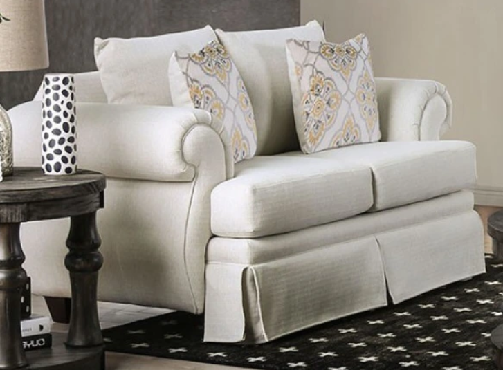 An ivory upholstered sofa collection looks clean and refined. It might not be the best choice when kids or pets are around but if you prefer to use your living room for quiet meetings, or mature groups this is an eye catching collection. Every facet adds to the delicate look, rolled arms, t-cushions, and a skirted lining. Have a sit down and enjoy a book.Read More