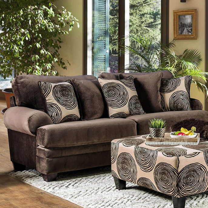 This set tells guests that you know how to balance form and comfort. The soothing microfiber upholstering is velvet soft; the chocolaty color is calming, and the included throw pillows add a chic patterned flair to the ensemble. Give your friends and family a soothing place to gather around and loosen up.