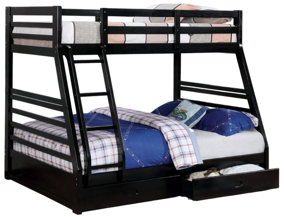 This twin over full bunk bed includes two large drawers for storage underneath and an attached ladder for easy access to the upper bed.Read More