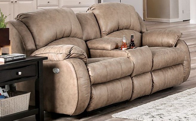 This solid American-made love seat features power headrests and recliners on each end. The microfiber suede-like fabric is an attractive shade of nickel. It's super-plush! Add the dual recliner with center console with the same bells and whistles and jettison your family into a world of luxury and comfort.