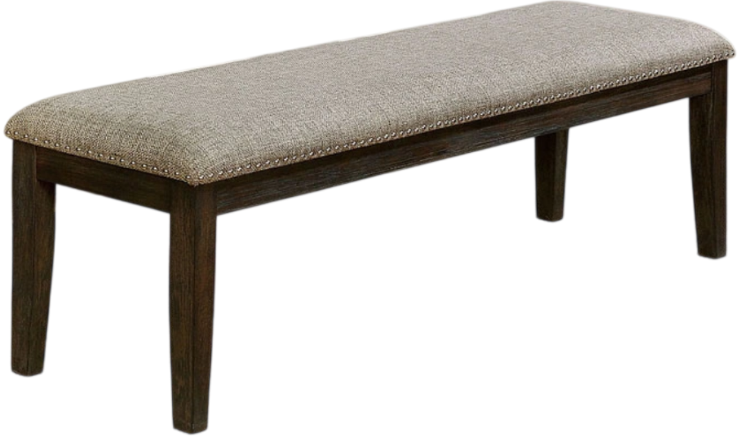 The bench offers a fabric‑upholstered seat accented with nailhead trim, combining rustic charm with subtle sophistication. Its sturdy frame ensures durability, while the simple silhouette makes it versatile for a variety of interiors. A timeless piece, it adds warmth and character to any dining or living space.Read More