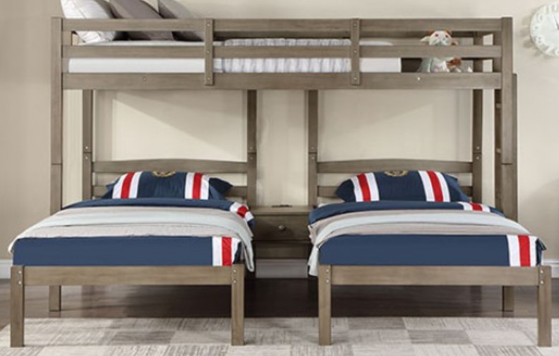 When space is at a premium, there's nothing better than this brilliant piece! A modern interpretation of the triple bunk bed design, the top loft goes over two beds below. In between the two beds is a built-in nightstand--a perfect spot for a table lamp for reading.Read More