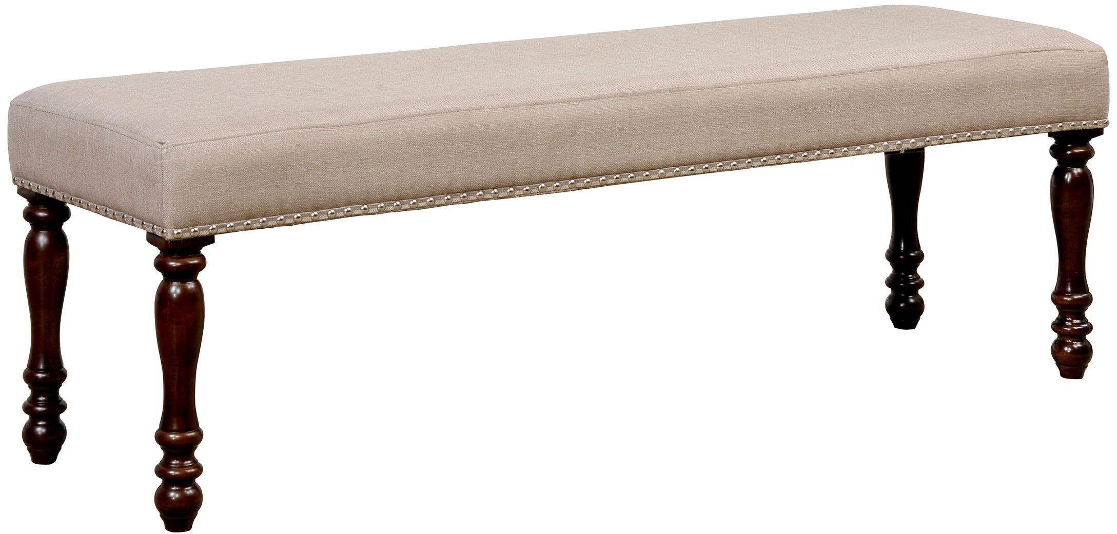 Bring some classy inspiration into your dining room with this warmed toned wood bench featuring stylish turned legs. Seat is beautifully wrapped with linen-like upholstery, making it the perfect addition to any comfortable dining area.Read More