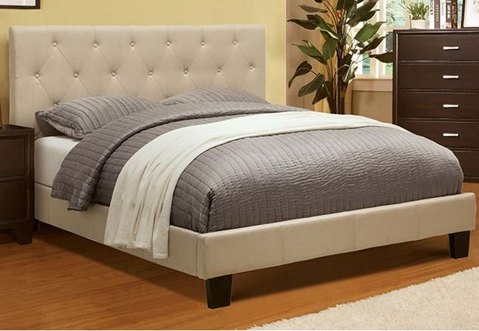 Create a simple yet inviting atmosphere in your bedroom with this contemporary bedroom set. The platform bed is fully upholstered fabric and available in two colors: gray or ivory. A padded, button-tufted headboard adds elegance and warmth to this beautiful set.