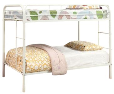 This twin/twin bunk bed by Furniture of America is built with a full metal frame and reinforced safety rails for strength and durability. It includes ladders on both sides for access to the upper bunk and provides a space‑efficient sleeping solution for shared rooms or sleepovers.Read More