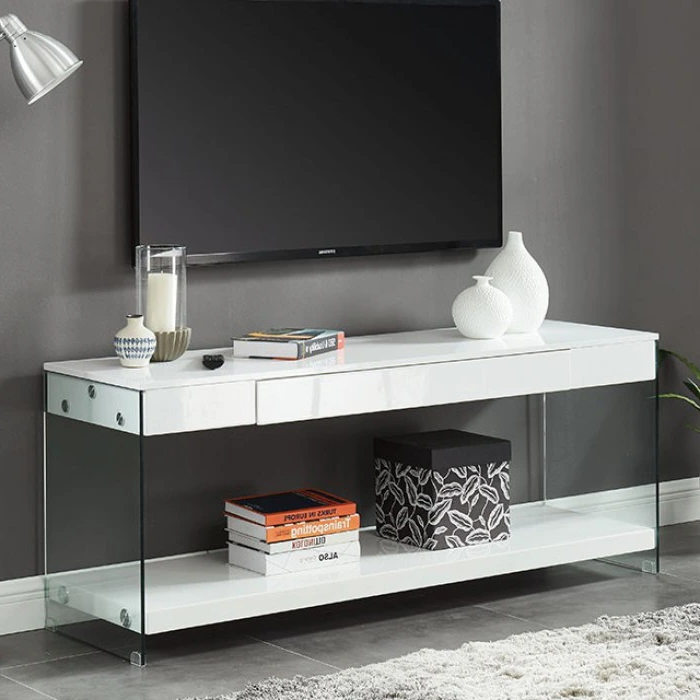 Refine your home entertainment area with the stylish and sophisticated appearances of this unique media center! A pair of sturdy tempered glass panels make up the supports of this sophisticated piece and create a minimalist look that helps open up the room. Undeniably sleek and modern.Read More