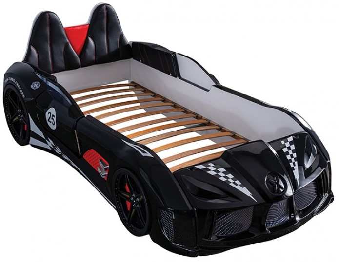 This sleekly designed race car bed comes in a variety of colors and styles for the future speed enthusiast. The wheels have embedded LED lighting, while the headlights double as a night light. Side doors swing open realistically and close magnetically, while the sides and headboard shaped like seats are upholstered in padded leatherette.Read More